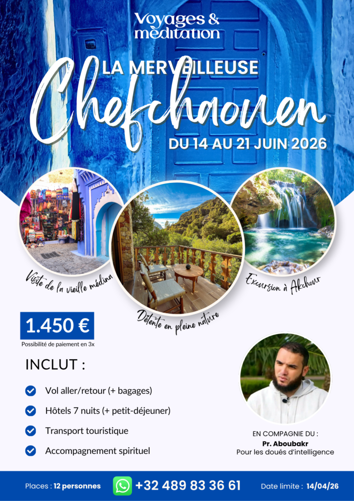 Voyages & Méditation vous invite à vivre une retraite spirituelle exceptionnelle à Chefchaouen, au cœur des montagnes du Rif, en compagnie du Pr. Aboubakr.